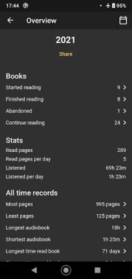Rozšírte svoje možnosti s jednorazovým nákupom, ktorý transformuje váš katalóg na ešte výkonnejší nástroj. Obohaťte záznamy o knihách o informácie o vlastníctve (vlastníte, požičali ste si, v zozname želaní), umiestnení na poličke, vlastných štítkoch a presnom počte strán či dĺžke audioknihy. Získajte prístup k rozsiahlym čitateľským štatistikám, ktoré vizualizujú váš pokrok a návyky. Tieto pokročilé dáta vám umožnia filtrovať knižnicu aj podľa vlastníctva, poličky a personalizovaných štítkov. Naviac, podeľte sa s priateľmi o svoje čitateľské úspechy a zoznamy želaní, inšpirujúc ich k novým čitateľským dobrodružstvám.