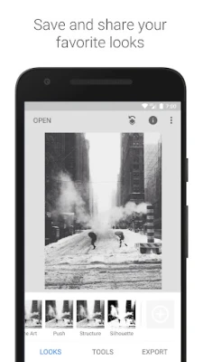 Snapseed od Google je všestranný profesionálny fotoeditor. Ponúka 29 nástrojov a filtrov vrátane Retuše, Štetca, HDR a Perspektívy. Upravujte JPG aj RAW súbory, vytvárajte vlastné vzhľady a selektívne aplikujte úpravy pre dokonalé fotografie. Vyladíte každý detail s presnosťou.
