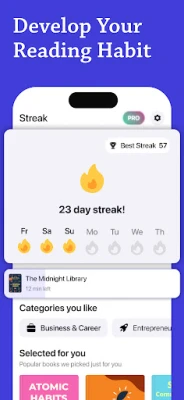 Sparkle je vybavená funkciami, ktoré obohatia vašu vzdelávaciu skúsenosť. Ponúka vám rýchle zhrnutia, vďaka ktorým pochopíte hlavné myšlienky bestsellerov v oblasti non-fiction už za menej ako 15 minút – ideálne pre tých, ktorí chcú kvalitu bez kompromisov. Môžete si vybrať, či si zhrnutia prečítate, alebo si ich vypočujete počas iných aktivít; zvukové verzie sú perfektné pre učenie na cestách. Aby ste vždy našli obsah, ktorý vás naozaj osloví, Sparkle pre vás pripravuje personalizované odporúčania kníh na základe vašich záujmov a cieľov. Sledujte svoj pokrok na ceste poznania a majte prístup k stiahnutým zhrnutiam aj offline, aby vám žiadna príležitosť na učenie nikdy neunikla.